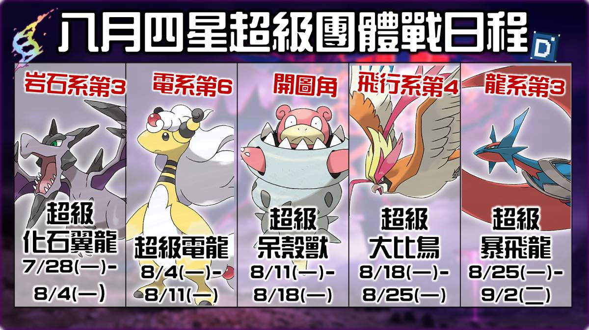 超級進化團體戰為四星頭目,將於活動期間進行更換,以下提供參考各頭目的資訊。