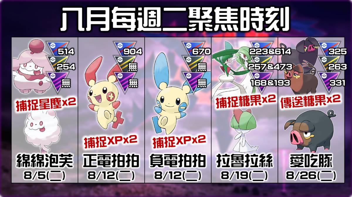 .8/19(二)拉魯拉絲聚焦時刻(沙奈朵&艾路雷朵介紹)捕捉寶可夢時糖果加倍。