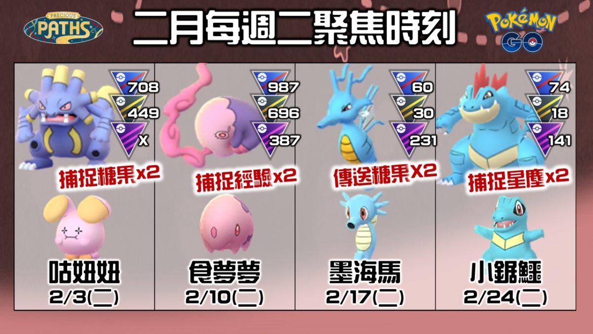 .2/24(二)小鋸鱷聚焦時刻(大力鱷介紹)捕捉寶可夢時星塵加倍。