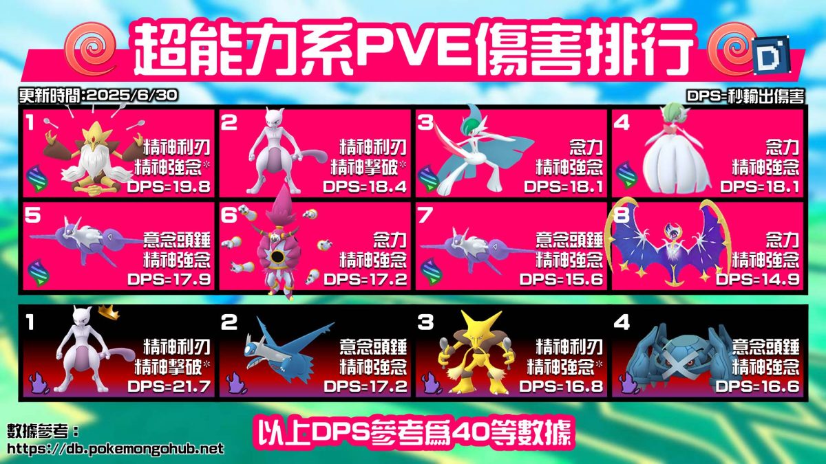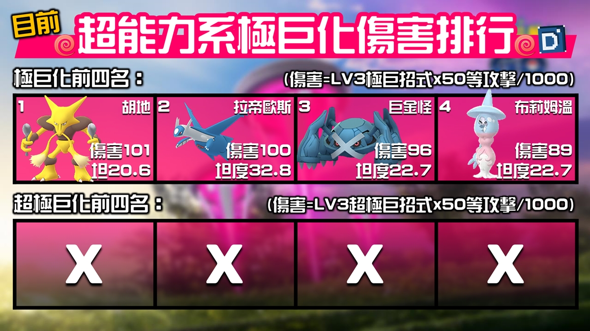 初代「胡地」是超能力系寶可夢,在遊戲裡是標準的玻璃炮角色,原先比較難處理鋼系對手的情況,在之前社群日取得格鬥系小招雙倍奉還後,在對戰裡遇到大多都是採用格鬥系招式配置,算是顛覆超能力系被鋼系壓制的概念,部過礙於坦度的不足,操作難度依舊很高,詳細數據就讓丹尼帶玩家們來了解。
