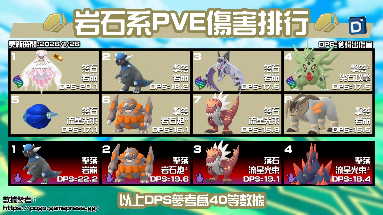 ★ 推薦招式:小招落石、大招汙泥波+魔法閃耀。