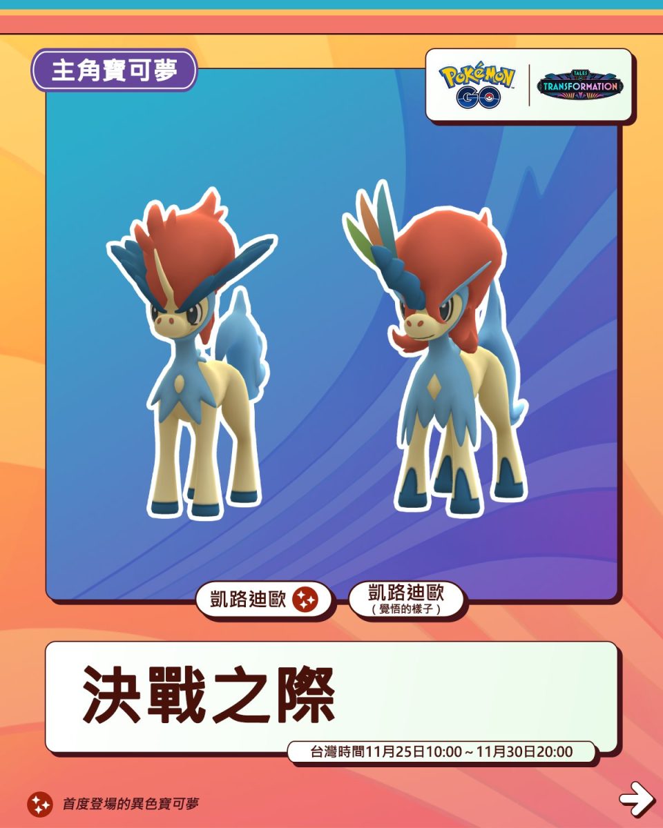 千變萬化的故事賽季的最後一個特殊調查將於活動開始後自動解鎖,而訓練家將能使用50顆凱路迪歐的糖果改變「凱路迪歐」的形態。