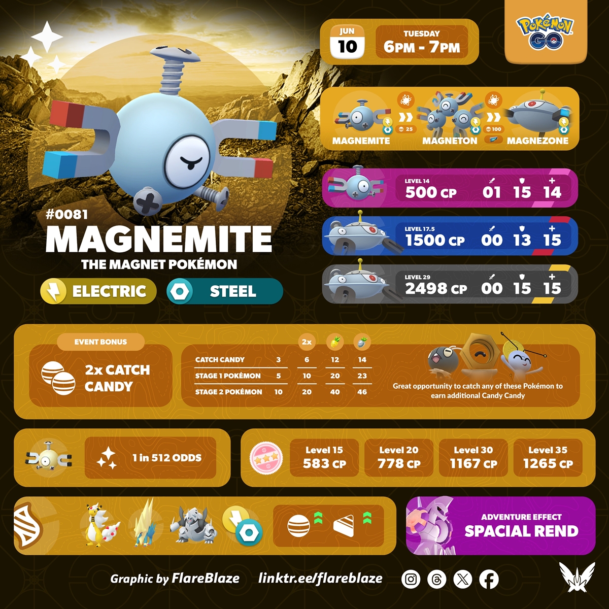 自爆磁怪在Pokemon GO遊戲裡的資料: