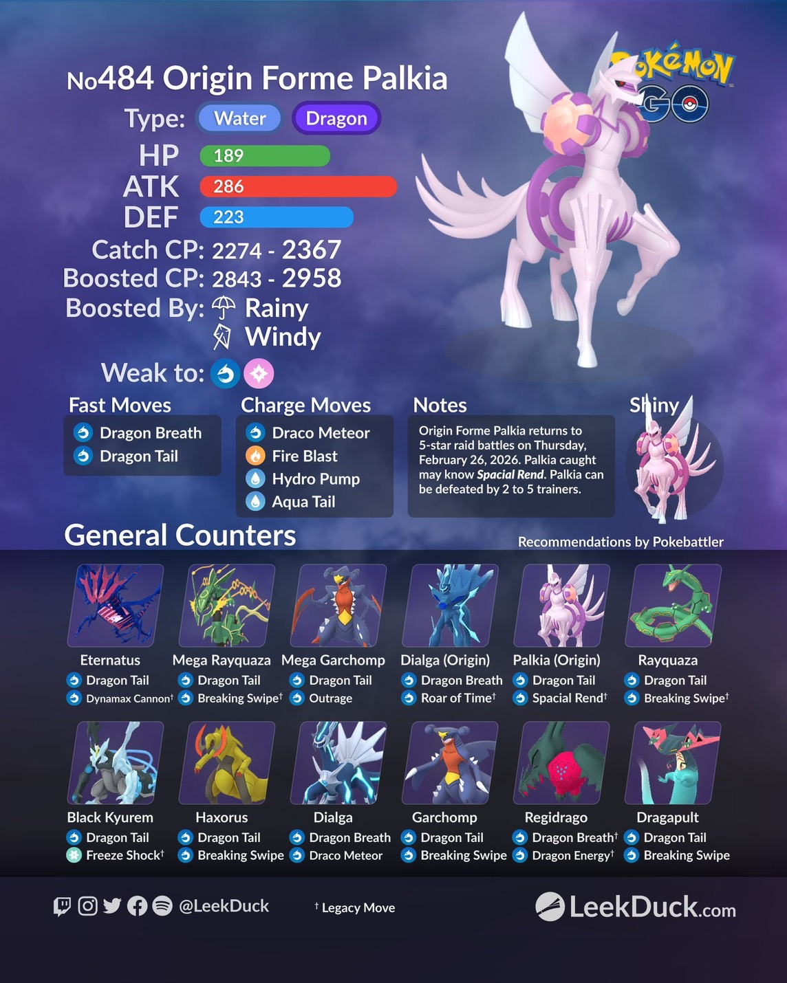 帕路奇亞(起源)的50等CP達到4683,三圍數值比起普通版本的高,不論是攻擊還是坦度都是如此。而屬性則同樣維持水跟龍系,算是弱點少抗性也不多的類型。招式組合的差異不同於騎拉帝納那麼明顯,僅僅是在大招添增亞空裂斬這專屬招式,以至於起源版本的帕路奇亞可以直接取代原本是沒問題的!