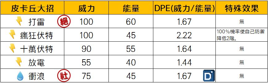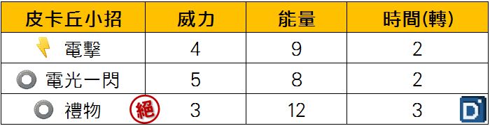招式屬性的部分,雖然擁有衝浪可以反擊弱點的地面了,但是皮卡丘還有一大剋星就是草系,在配招電與水時都不能有效打擊下,皮卡丘的脆皮程度將面臨被對手當成完美練功包。