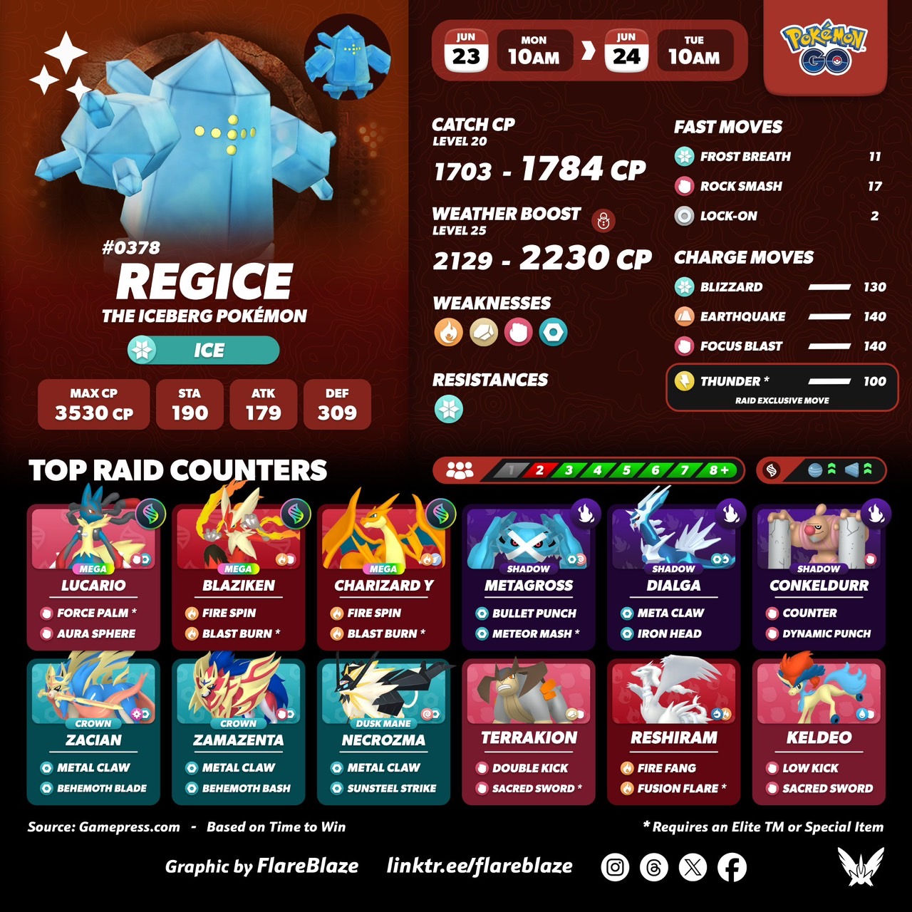 雷吉艾斯在Pokemon GO遊戲裡的資料:
