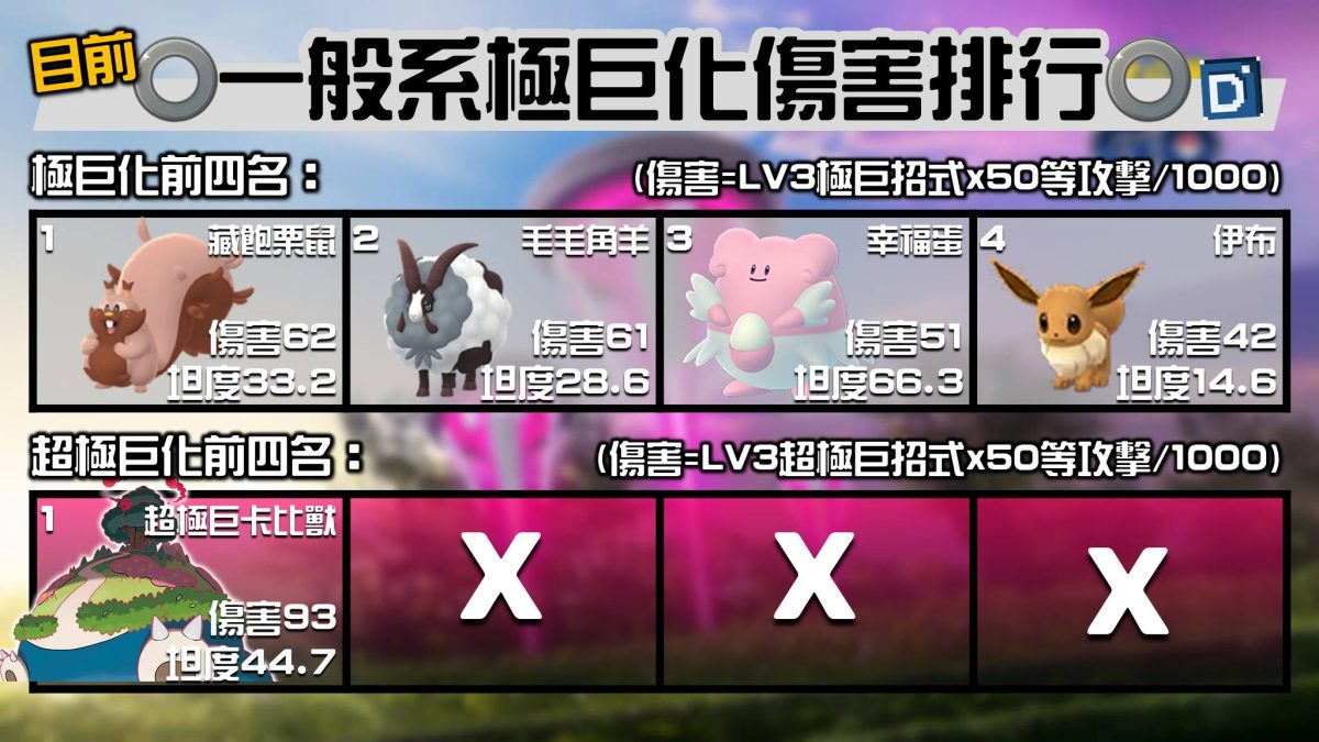 超極巨卡比受的傷害是目前一般系的最高,但坦度是輸給幸福蛋。