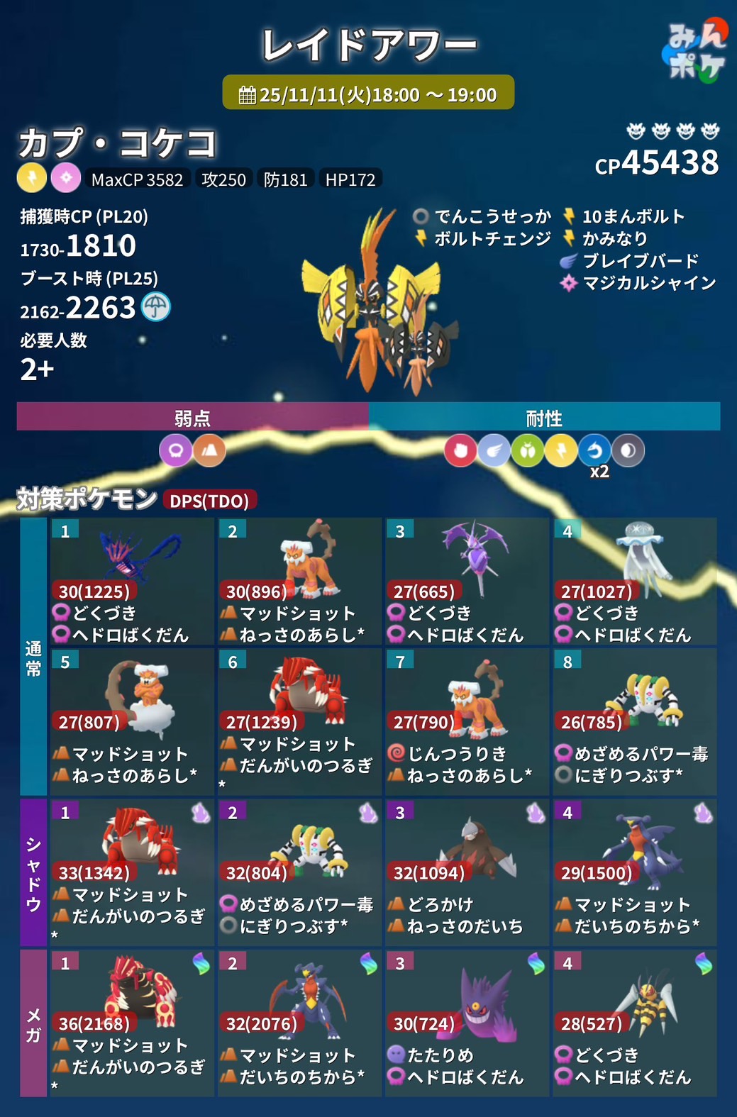 ★ 對戰使用:簡單說只要電系招式能打的,對於卡璞.鳴鳴就是順風!而坦度偏弱的牠在平局時,很容易被對手開盾強壓的問題,自然之怒得以緩解原先的困擾,除非對手抗電,不然很難有效抵禦卡璞.鳴鳴。
